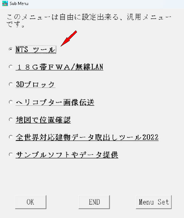 登録したい場所を選択し、Menu Setボタンを押して、候補よりNTS ツールを選択