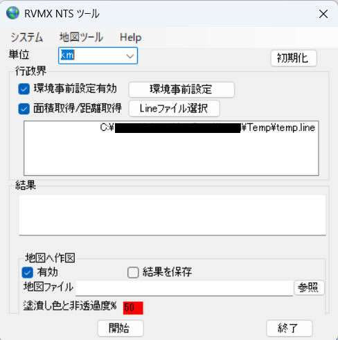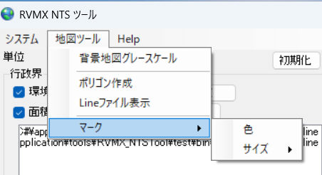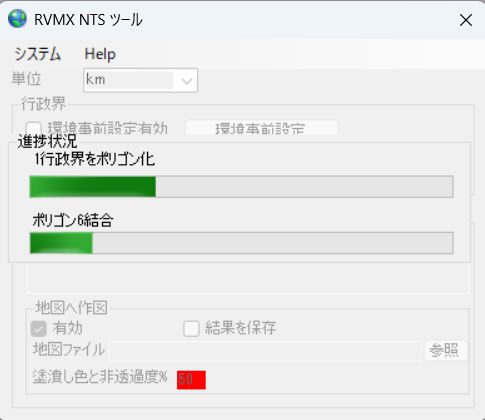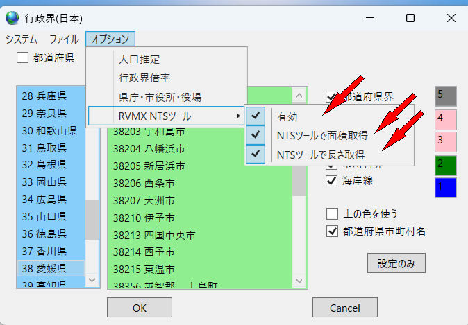 a.プルダウンメニューのオプション->RVMX NTSツール->有効をチェック、これにより行政界の合成をNTSのGIS機能を利用