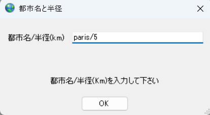-2.緯度経度付き地図が選択されなかったときは、都市名と半径の入力が求められます。