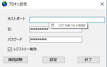 ここを空白にすると、プロキシ設定は無効(機能しない)となります。