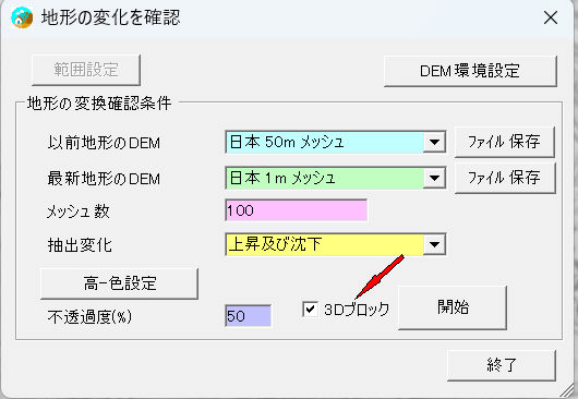 そのdem3ファイルと1mメツシュ間で比較すれば可能です。
