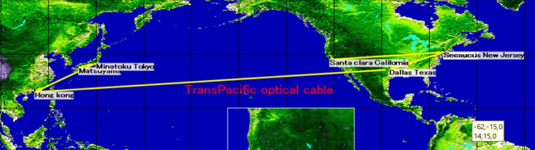 又は、インド洋経由の海底ケーブルを利用してヨーロッパやアフリカもあります。この場合は中国(香港)を経由する場合がありますが、
