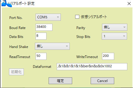 c.Seriport設定をクリックし、シリアルポートの設定を行う。