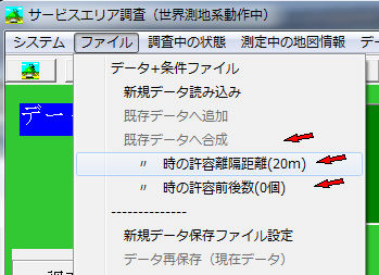 -1.データを合成する時の、許容離隔距離を設定、既に設定済みの時は省略(メニューに既設定値が表示されています)