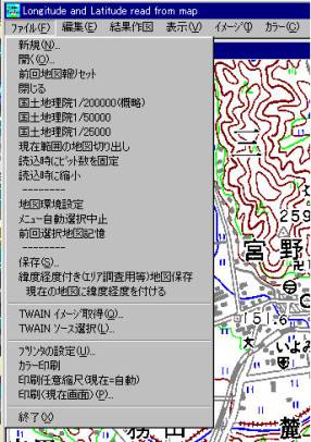 O現在の地図に緯度経度を付ける −>現在アクティブなウィンドウの画像に、現在
