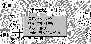 既存地図へマーク −>現在アクティブな地図で、指定の緯度経度の位置へ