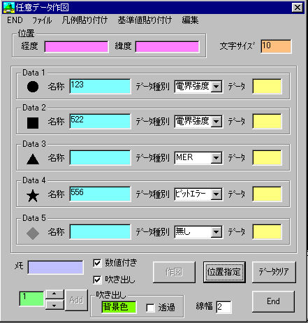 E数値データ試験印字 −>現在の地図上に、指定書式で試験数値印字