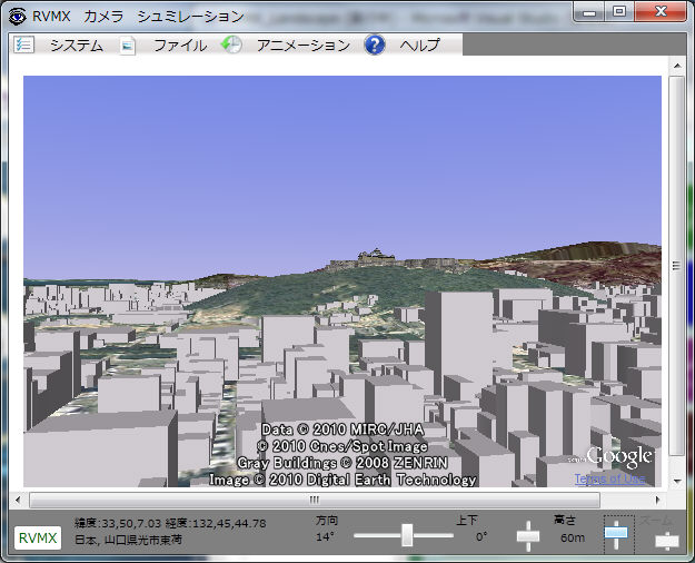 Google Earthを利用して、指定場所に、指定高さにカメラを設置した時に、見える景色のシュミレーションです。