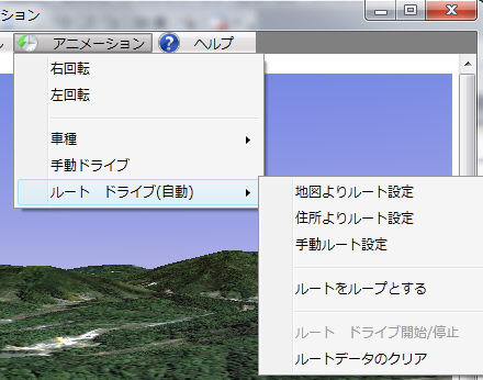 e.ルートドライブ 地図上で設定したルート(A〜B)間を自動で往復します(おまけ機能)