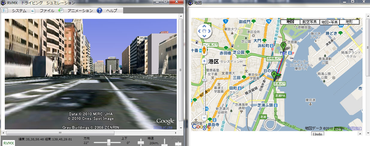 b-3.地図を結合 シュミレーション画面の横に地図を結合します。