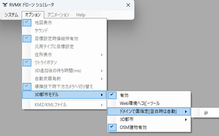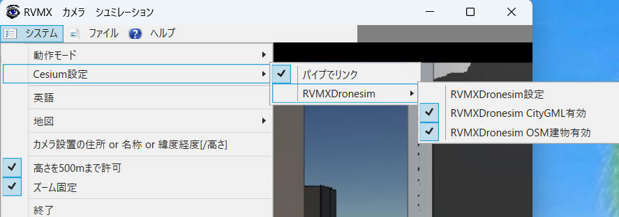 d-2_3.RVMX DronesimCityGML有効 RVMX ドローンシュミレータで建物データCityGMLを有効にします