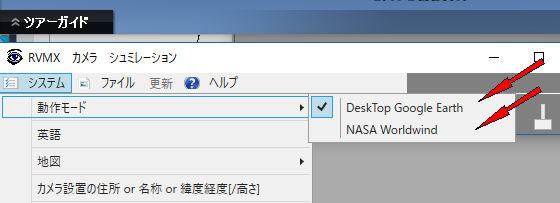 RVMX ITVカメラをDesktop Google Earthで代用する機能