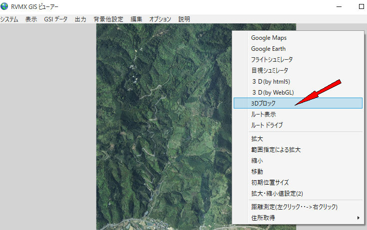 -1.GISViewerで地図を表示後、マウスの右ボタンクリックで3Dブロックをクリック