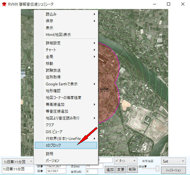 RVMX GIS Viewerや警報音達シュミレーションよりWindowsより飛び出す3Dブロック(RVMX_3DBlock)の機能です。