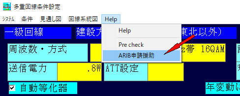 多重無線設計の最初の画面でHelp->ARIB申請援助をクリック