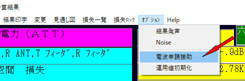 多重無線設計の計算結果表示画面でオプション->電波申請援助をクリック