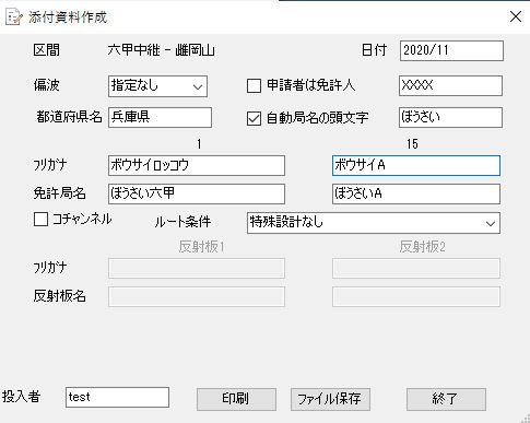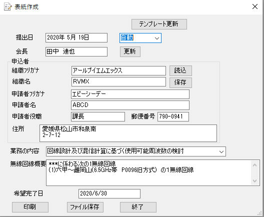 よって、以前の機能は開発途中のままでした。しかし、ユーザーさんよりARIBの申請書類の作成機能が欲しいとの要望が有り作成しました。