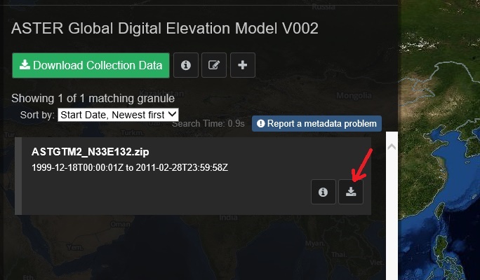 通産省の提供サイトが停止したため、ASTER GDEMデータをNASAよりの取得方法説明