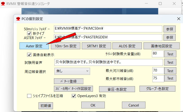 a.音達シュミレーショで局位置が設定されている時等