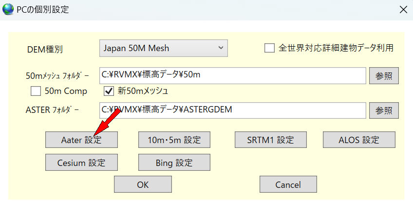 1.Aster環境設定画面