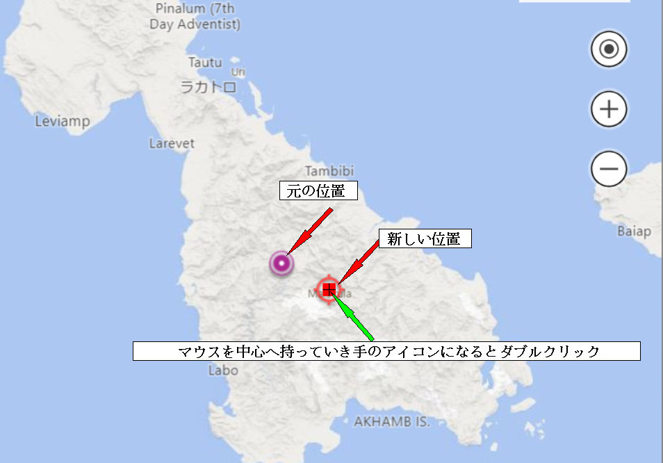 目的の位置へ移動しアイコンが手になるとダブルクリック