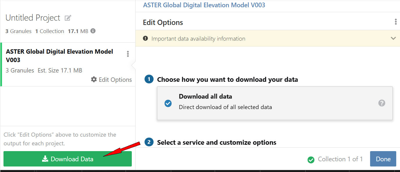 NASA EarthDataよりASTER GDEMデータをNASAよりの取得援助方法3説明