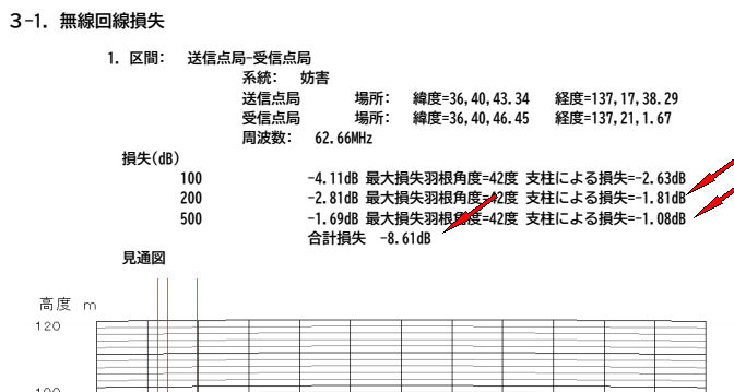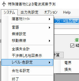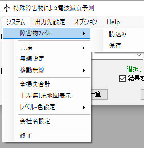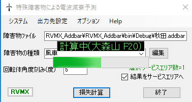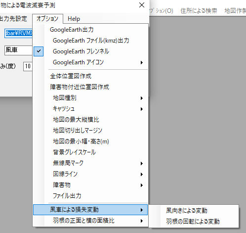 発電用風車などの特殊構造物(回転部分や障害物の下側を通過のある)による電波減衰予測システム(参考機能)です。