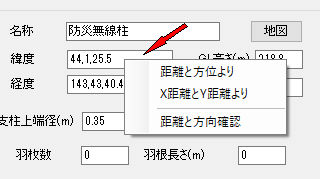 緯度経度入力Boxでマウスの右クリックでメニューが出ます。