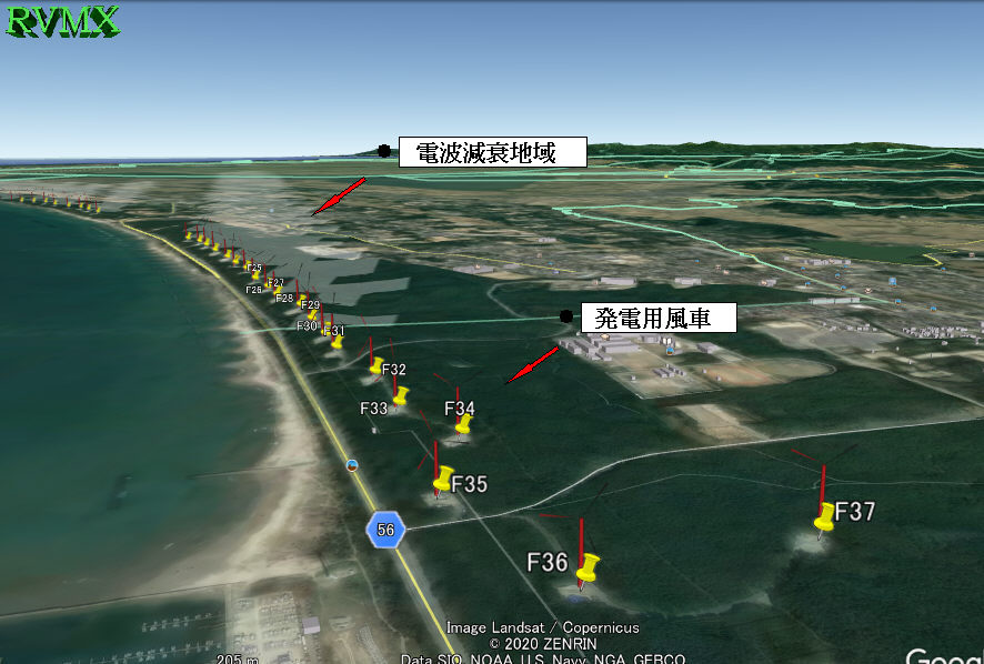 発電用風車などの特殊構造物による移動系電波減衰予測システム(2018年以降)
