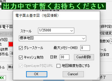g-7.前回条件利用 日本電子国土の時で、前回条件をそのまま使います。OFFの時は種類の選択などの画面が出てきます。