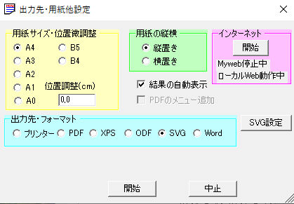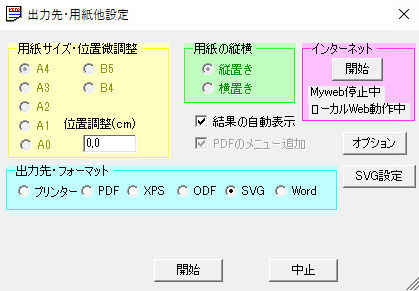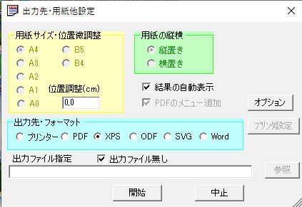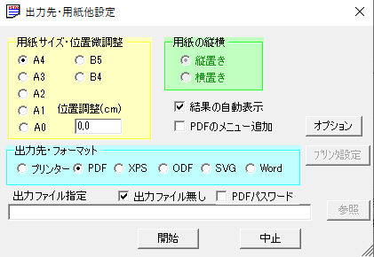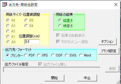 オ.出力先・フォーマット プリンタ・PDF・XPS・ODF・SVG・Wordの選択