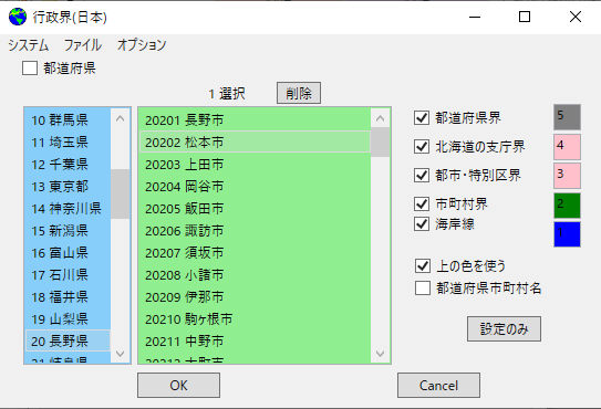 g-1-2.設定ボタン 行政界を選択。色・線幅なども選べます。