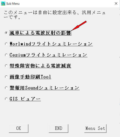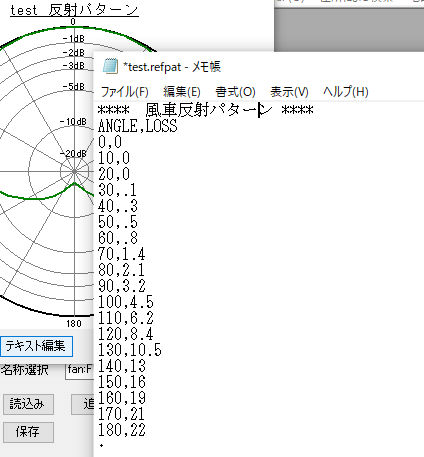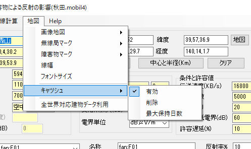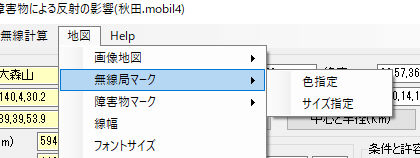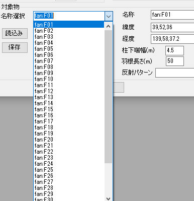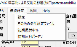 基本的には下記の設定は発電用風車などの特殊構造物による電波減衰予測システムの-データファイルより(addbar)を読み込み自動設定をします。