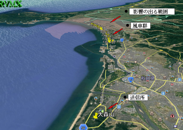 秋田での障害検証の結果、直接波の減衰ではあまり影響がなかったですが、反射波影響では実際に障害が起きている地域への影響が有るとの結果が出ました。