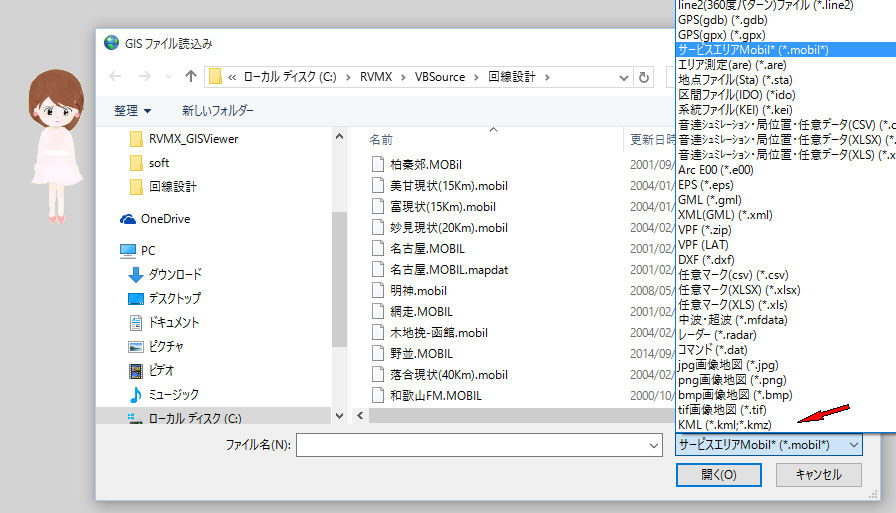RVMX GIS ViewerへKML(KMZ)ベクター出力・入力追加機能です。