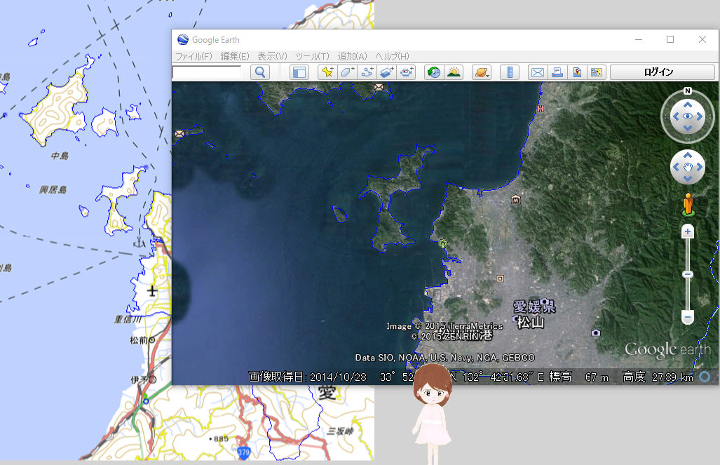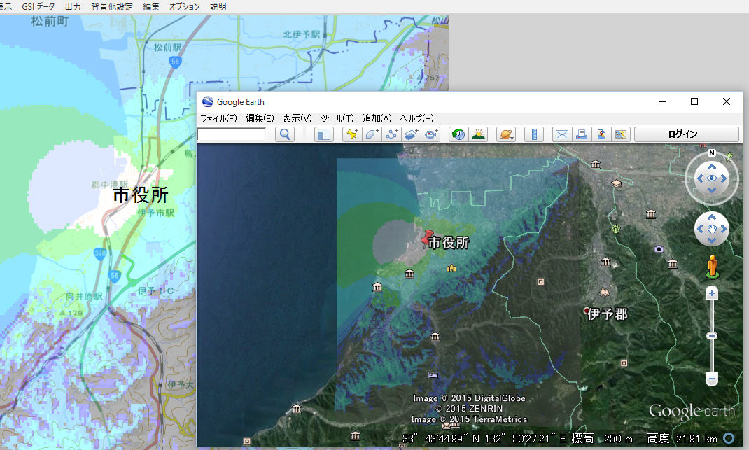 また、KML(KMZ)ファイルは直接Goole Earthで表示できます。