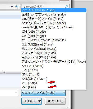 -1.ファイルの種類でVPFを選択(圧縮のzipか解凍後のlat)