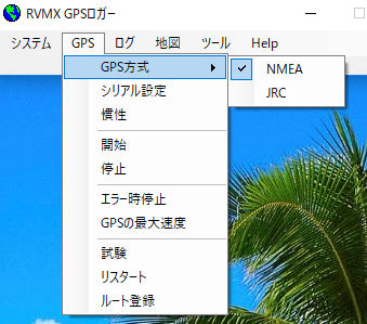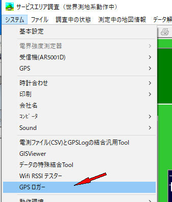 最初の画面で、プルダウンメニューのシステム->GPSロガーをクリック