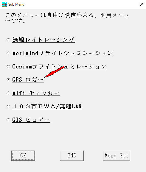 GPSロガーがメニューに無い時は、メニューに登録
