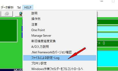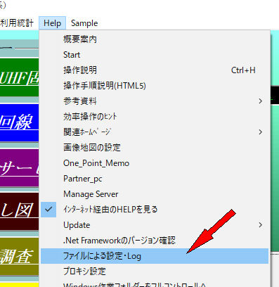 a.最初の画面でHelp->ファイルによる設定・Logをクリック