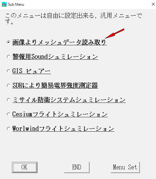登録したい場所を選択し、Menu Setボタンを押して、候補より画像よりメツシュデータ読取りを選択