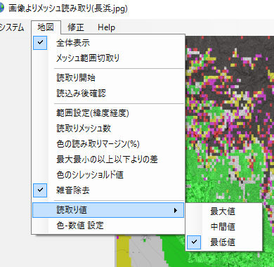 -2.メッシュデータよりの数値読み取りは、利用用途により、最低値・中間値・最大値を使い分ける必要があります。