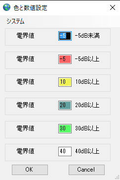 b-3.*dB以上や以下 入力した数値で表示されます。(単位はdBとなっていますが、その他の単位でも可能です。)