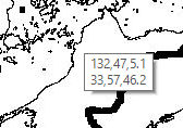 d.緯度経度表示 地図として認識している時に、マウスを移動すると緯度経度が表示されます。