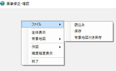 a-1.読込み 画像ファイルを選択し読み込みます。(対応ファイルはjpg・png・gif・bmp・tif・pdf・mapdatで、緯度経度はRVMX製ソフトで緯度経度付きで保存した物)