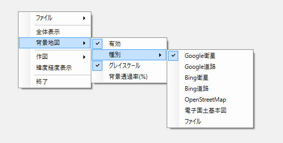 c.背景地図 画像の背景に地図を表示します(但し、インターネットが利用できる環境が必要です)