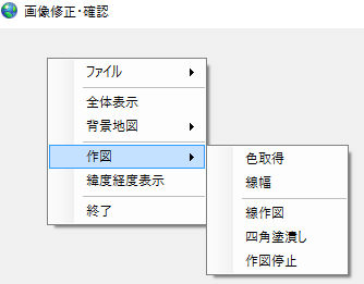 e.地図を上書き 現在の画像に、ファイルよりの地図(緯度経度を考慮)を上書き。但し,白色は透過されます。
