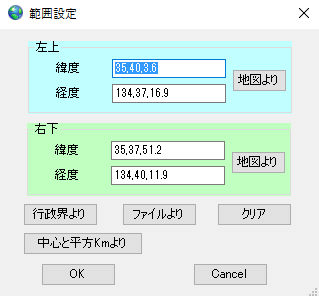 -2.範囲設定(緯度経度) 画像の左上と右下の緯度経度を設定