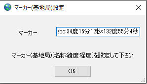 b.マーカ(基地局)設定 マーカ(基地局)設定を行います(複数時は;で区切り)。但し、最大10地点(用途はmobil等デジタルファイルへの挿入)