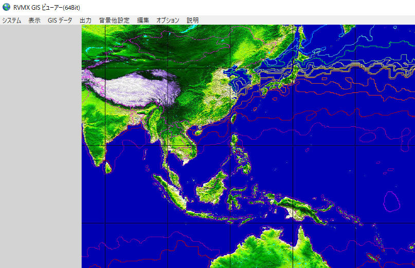 -2.RVMX GISViewerで日本及びアジア付近地図に作図した例(ベクトルファイル経由)